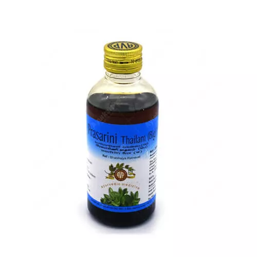AVP Prasarini Thailam (Big) is an Ayurvedic oil, used in Ayurvedic treatment of rheumatoid arthritis, sciatica, neck pain, stiffness etc. It is used for external application.