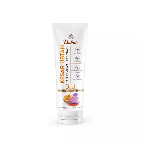 Dabur Kesar Ubtan Face Wash is a unique blend of traditional ingredients like saffron, turmeric, and natural herbs designed to cleanse, brighten, and rejuvenate your skin. Inspired by age-old skincare rituals, this face wash offers the goodness of Ubtan with added benefits of kesar (saffron) and turmeric, known for their natural skin-enhancing properties. Brightens & Revitalizes: Saffron and turmeric work together to give your skin a bright, radiant glow, reducing dullness and evening out skin tone for a youthful appearance. It specialises in Tan Removal, Deep Cleansing & Exfoliating: Helps fade tan & sun damage. Removes impurities, dirt, and excess oil while gently exfoliating dead skin cells, making your skin look fresh and feel soft. Nourishes & Soothes: Enriched with natural ingredients that soothe and nourish the skin, leaving it feeling soft and hydrated after every wash.