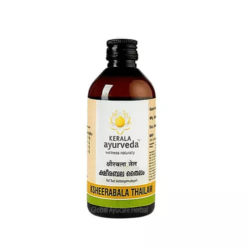 Kerala Ayurveda Ksheerabala Thailam is a traditional Ayurvedic herbal oil used for external application. It is commonly used to support muscle and joint comfort and to promote relaxation of the body and senses. Regular massage, especially as part of a bedtime routine, helps calm the mind and encourage restful sleep. Prepared according to classical Ayurvedic principles, this oil offers a gentle and traditional approach to daily body care and overall well-being.