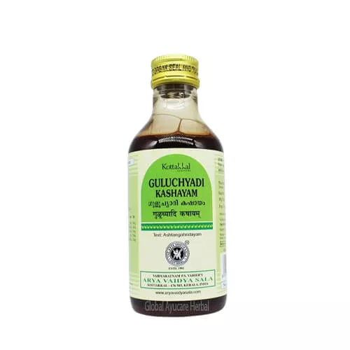 Kottakkal Guluchyadi Kashayam is a traditional Ayurvedic decoction that helps balance excess body heat and purify the blood. Formulated with cooling and detoxifying herbs like (Tinospora cordifolia), (Neem), and (Red Sandalwood), this Kashayam effectively supports relief from skin allergies, urticaria, and inflammatory conditions like rheumatism and gout. It also aids digestion, reduces burning sensations, and promotes overall metabolic balance.