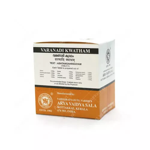 Kottakkal Varanadi Kwatham are an Ayurvedic polyherbal formulation traditionally used in Ayurveda to support overall wellness and balance. They are commonly included in routines aimed at maintaining metabolic health and digestive comfort.This formulation also supports general joint mobility and contributes to the normal functioning of the urinary system and kidneys, helping promote overall well-being when used as part of a balanced lifestyle.