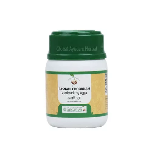Vaidyaratnam Rasnadi Choornam is an Ayurvedic formulation used to effectively treat fever, and headache. It helps in providing relief from common cold, congestion, and related symptoms, making it a go-to remedy for seasonal illnesses.